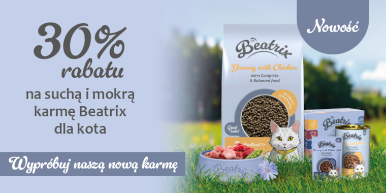Suche i mokre karmy Beatrix dla kota z rabatem -30%