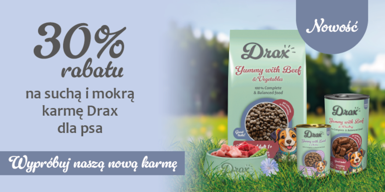 Suche i mokre karmy Drax dla psa z rabatem -30%