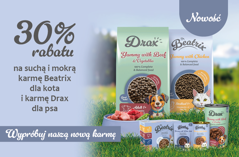 30% rabatu na karmę Drax dla psa i karmę Beatrix dla kota