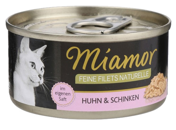Filety z kurczaka z szynką, które smakują nawet najbardziej wybrednych mruczkom. Formuła tej mokrej karmy dla kotów zawiera wysokiej jakości, starannie dobrane składniki zapewniające doskonały smak.Pokarm Miamor charakteryzuje się wysoką wartością odżywczą i dużą przyswajalnością. To pyszny i zdrowy posiłek dla Twojego kota, karma o dużej zawartości łatwo przyswajalnego białka. Nadająca się również dla kotów starszych.