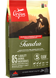 Orijen jest produkowany wyłącznie w nagradzanej fabryce w Kanadzie. Jest naturalną drogą do utrzymania Twojego psa w najlepszym zdrowiu i kondycji.Odzwierciedlając bogactwo Natury, jedzenie ORIJEN TUNDRA przepełnione jest mięsem różnorodnych zwierząt: kozy, dzika, golca zwyczajnego, kaczki, barana. Składniki pozyskiwane są w regionie Alberty i dostarczane świeże lub surowe w odżywczych proporcjach WholePrey™, co redukuje potrzebę sztucznej suplementacji.