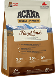 ACANA HIGHEST PROTEIN RANCHLANDS DOGZbilansowana karma przeznaczona dla psów wszystkich ras i w każdym wieku.