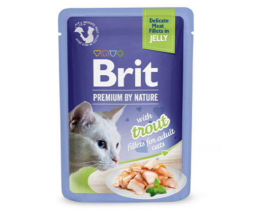 Brit Premium Pouches with Trout Fillets to karma klasy premium, idealnie nadająca się dla dorosłych kotów. Pyszna i zdrowa, jest idealna dla kocich smakoszy. Smakowite kąski w galaretce dostarczające kotu wszystkich potrzebnych mu witamin i minerałów.Formuła tej kociej karmy zawiera inulinę i taurynę. Inulina to prebiotyk wspierający pracę układu pokarmowego kota i dbający o florę bakteryjna jelit. Wspomagający trawienie, poprawiający naturalna odporność organizmu i tym samym poprawiający samopoczucie zwierzęcia. Tauryna zaś to składnik diety niezbędny w diecie każdego kota, którego to niedobór może powodować szereg zaburzeń pracy organizmu zwierzęcia. Jego obecność jest konieczna dla prawidłowej pracy układu nerwowego i zachowania zdrowych oczu. Tauryna poprawia metabolizm, usprawnia pracę serca i chroni wątrobę. Kot nie jest w stanie sam sobie wytworzyć tauryny - musi ją otrzymywać w pożywieniu.