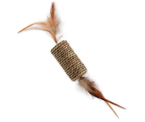 Ekologiczna zabawka dla kota.Roller w kształcie walca jest wykonany z wysokiej jakości sizalu, trawy morskiej i ptasich piórek. Solidne wykonanie zapewnia to, że kot szybko nie zniszczy zabawki. Śliczne kitki z piór zachęcą do harców każdego kota.
