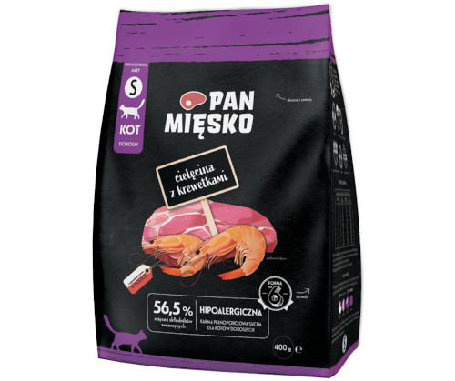 Charakterystyka suchej karmy Pan Mięsko cielęcina z krewetkami dla kota