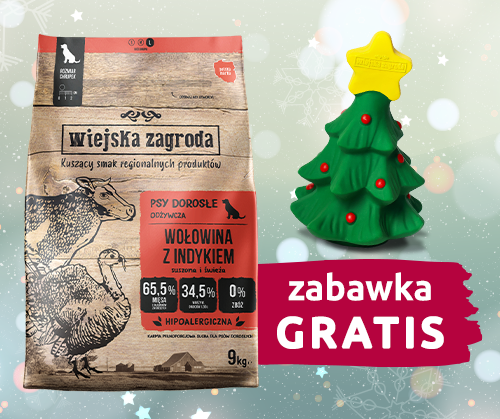Teraz kupując 9kg opakowanie karmy Wiejska Zagroda otrzymujesz w prezencie świąteczną zabawkę dla psa. Oferta ważna do wyczerpania zapasów
