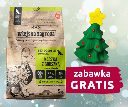 Teraz kupując 9kg opakowanie karmy Wiejska Zagroda otrzymujesz w prezencie świąteczną zabawkę dla psa. Oferta ważna do wyczerpania zapasów